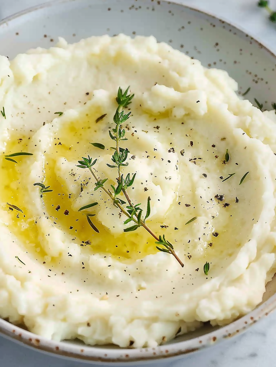 Mashed Cauliflower with Roasted Garlic Butter & Thyme